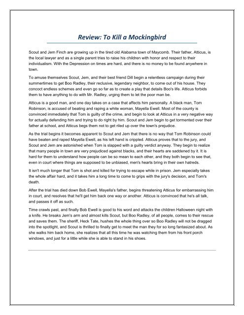 Book Review on To Kill a Mockingbird. Read customer reviews find best sellers. Click here for the lowest price.